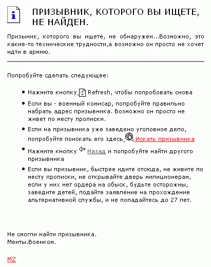 СообщениеДобавлено: Суббота, 27 Май 2006, 18:30:04    Заголовок сообщения: Как найти призывника? Bill Gates объясняет... Ответить с цитатой