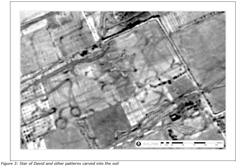 fields and paved roads, but also a Star of David measuring 60m in diameter carved into the